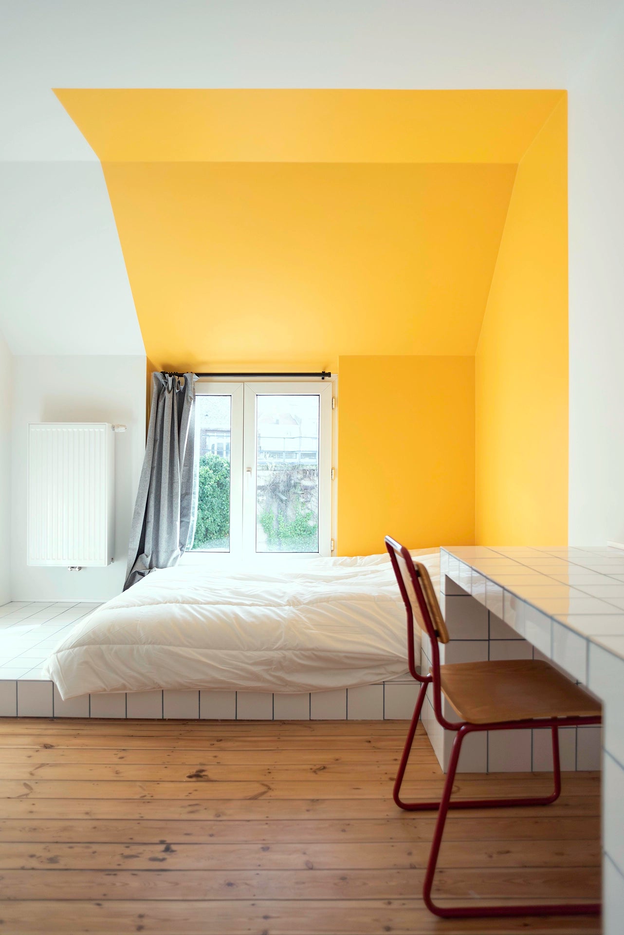 See the result in this house revamped with 4 strong colours, symbols of character and power: New Spot for blue, Wake Up for yellow, British Green for green, and finally Go Kart for red.